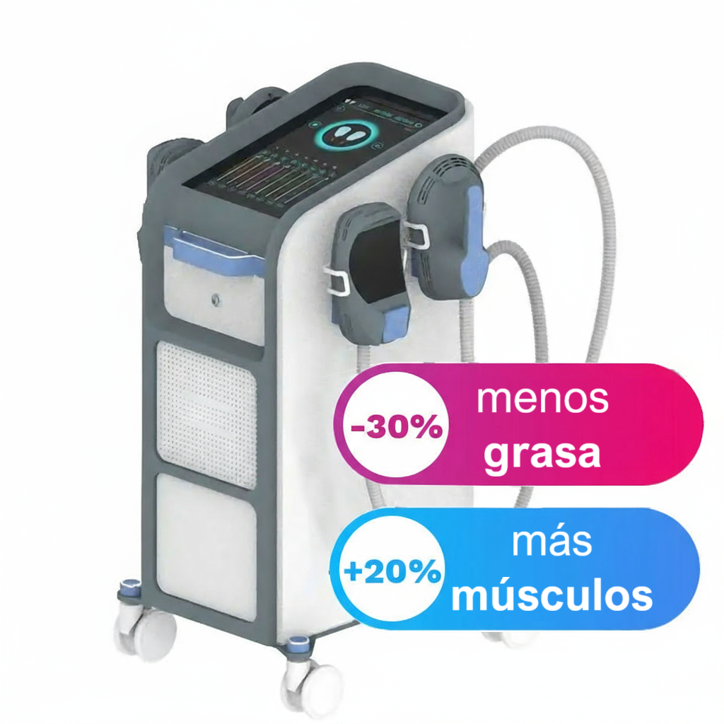 • Estimulador muscular 2 en 1: HIEMT + RF.