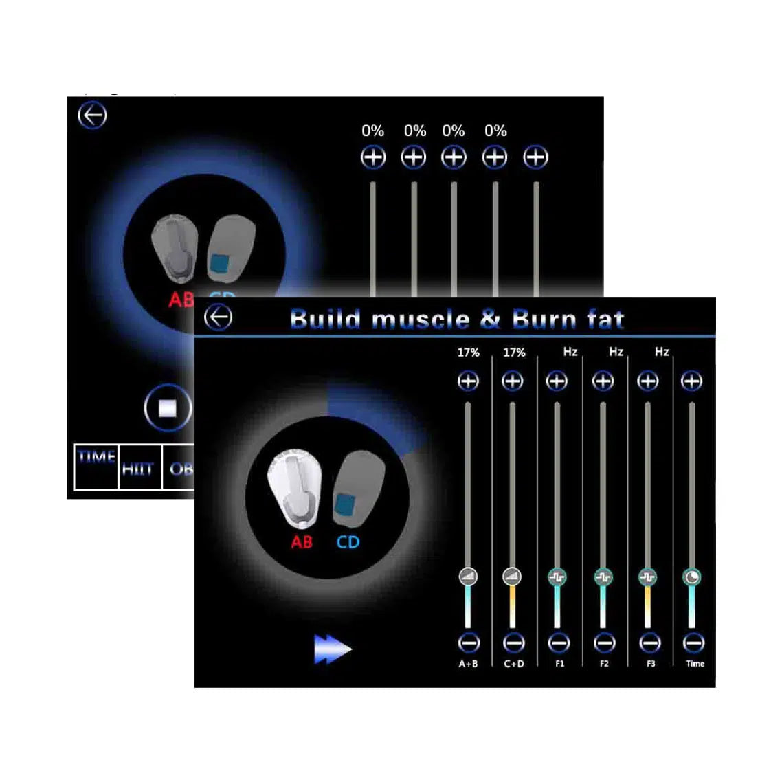 La tecnología HIEMT penetra hasta 8 cm en el tejido muscular, provocando contracciones musculares intensas que conducen a su crecimiento y fortalecimiento. Al mismo tiempo, la RF calienta la capa de grasa hasta 43-45 °C, acelerando el proceso de descomposición de las células grasas, que luego se eliminan del cuerpo.